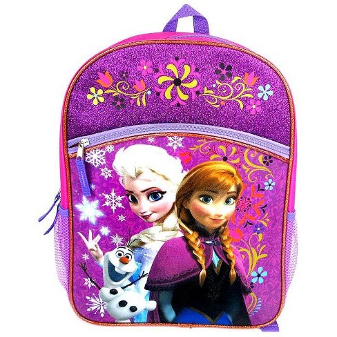 This cute disney frozen backpack features a gorgeous raised print on the front adjustable and padded shoulder straps two side pockets one with velcro closure and an insulated front pocket to keep their drinks and food cool.